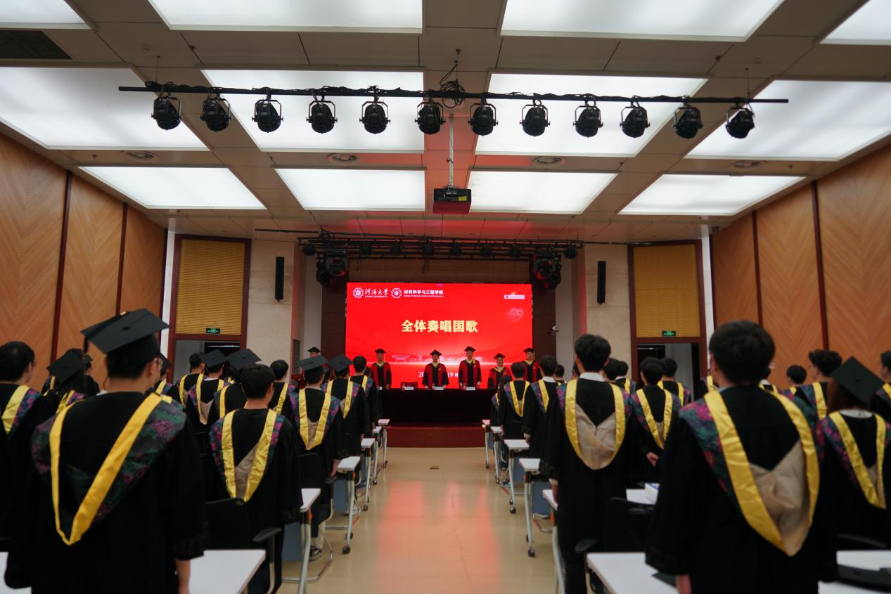 6月19日,材料科学与工程学院2025届本科生毕业典礼暨学位授予仪式在江宁校区行政楼105报告厅与常州校区55号楼139报告厅隆重举行,共同见证2025届材料学子完成学业、开启人生新篇章的重要时刻。学院院长赵永好,党委书记陈伟刚,副院长杨可、宋丹,教师代表洪晟、刘欢、严春妍,辅导员温泽出席典礼。2025届全体本科毕业生及部分毕业生家长代表满怀喜悦与憧憬齐聚一堂。典礼由学院党委副书记、副院长辛绍权主持。