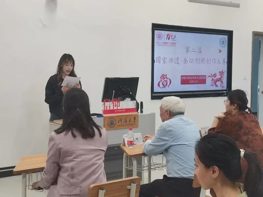 4月26日,由材料科学与工程学院承办的河海大学第三十七届校园文化艺术节活动之第二届国家非遗·金坛刻纸创作大赛在常州校区2号楼E104圆满举办。本次活动邀请到国家级非遗项目金坛刻纸代表性传承人杨兆群老师、金坛刻纸市级传承人何雅雯老师进行现场授课,吸引了来自河海大学9个学院的40余名学生参赛,材料院团委书记蒋旦悦老师、辅导员张阳阳老师参加现场活动。学院学生会精心组织,活动通过理论讲解、实践创作等环节,将非遗技艺与青年创新思维深度融合,现场创作出十余幅精美作品。